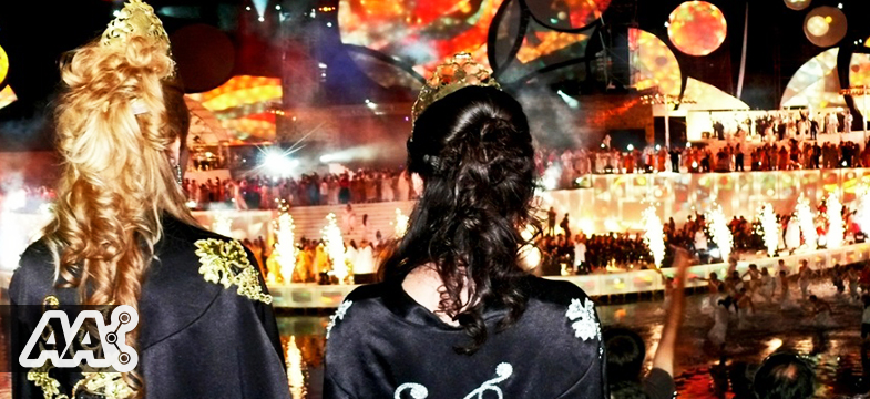 Desfile de carros alegóricos lumínicos que transportan a las reinas tanto salientes como aspirantes al cetro nacional.