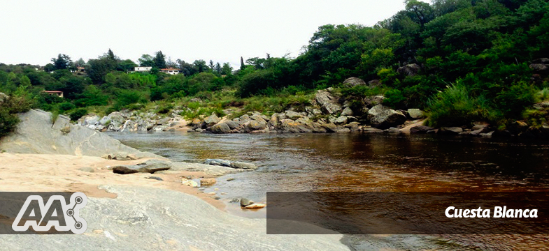Las playas de Cuesta Blanca, ofrecen al visitante alternativas para disfrutar el calor del verano a pocos kilómetros de Villa Carlos Paz. Por encontrarse en el camino hacia las Altas Cumbres, el agua va alternando las zonas rocosas con las de arena y las espectaculares ollas para los que prefieren nadar.